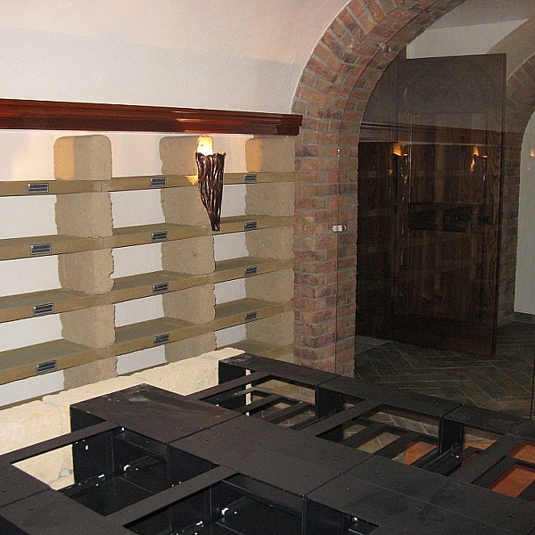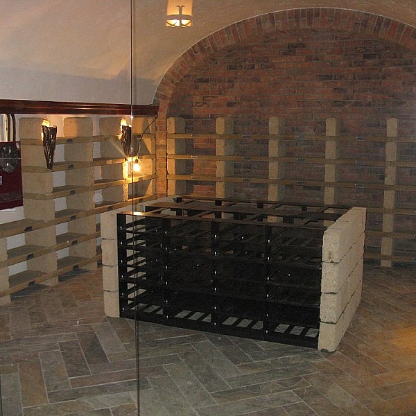 Реализованный проект винного погреба в Казани. Стеллажи созданы с помощью коллекций ARCave Bordeaux Rack и SandyLine Tuff. Погреб выполнен в традиционном дизайне с использованием каменных и кирпичных элементов отделки с небольшим добавлением металлических стеллажей, выступающих центром просторного хранилища.